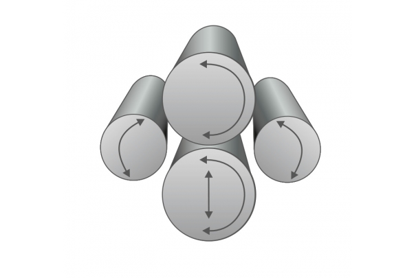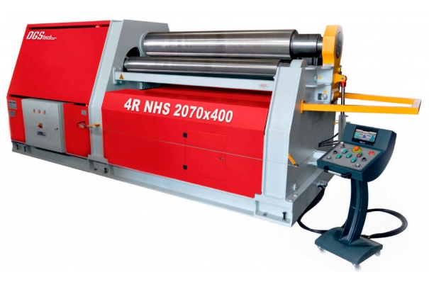 Настройка на необходимый радиус гибки осуществляется за счет перемещений боковых валов. Подходят как для работы с мягкими металлами и алюминием, так и со сталями повышенной твердости, в т.ч. нержавеющей сталью. Легкое изготовление обечаек простых форм и изделий с переменным радиусом. Перемещение нижнего и боковых валков осуществляется при помощи гидроцилиндров. Боковые вальцы имеют «планетарную» схему перемещения, что сводит к минимуму наличие прямых участков на краях сгибаемого материала.