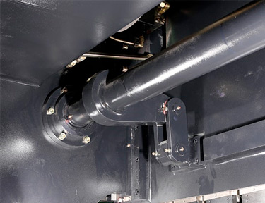 Конструкция очень проста, но обеспечивает высокую точность гибки изделий. Оба конца гидроцилиндров зафиксированы общим валом, таким образом перемещение верхней траверсы происходит всегда параллельно рабочему столу. Эта структура подчеркивает эффект уравновешивания движения во время работы.