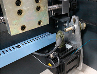 Приводится в движение производительным сервомотором с высокой точностью позиционирования, обеспечивая абсолютную синхронизацию движения заднего упора.