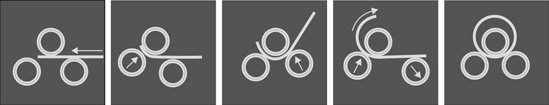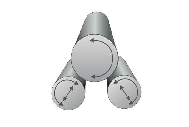 Перемещение нижних валков осуществляется при помощи гидроцилиндров по «планетарной» схеме перемещения, что сводит к минимуму наличие прямых участков на краях сгибаемого материала.
